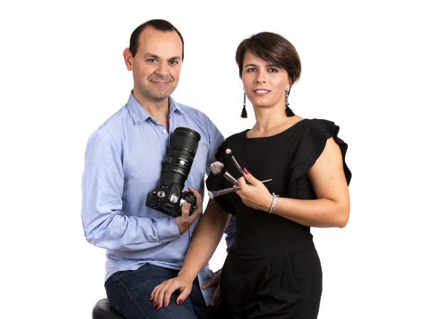 Durante a sessão estamos sempre presentes os dois, o Nuno como fotógrafo e a Cláudia como maquilhadora e assistente.